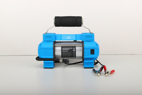 Компресор автомобільний двопоршневий (35 л/хв 8,2 Атм) з ліхтарем, кручений шланг, клеми АКБ 12 Atelie